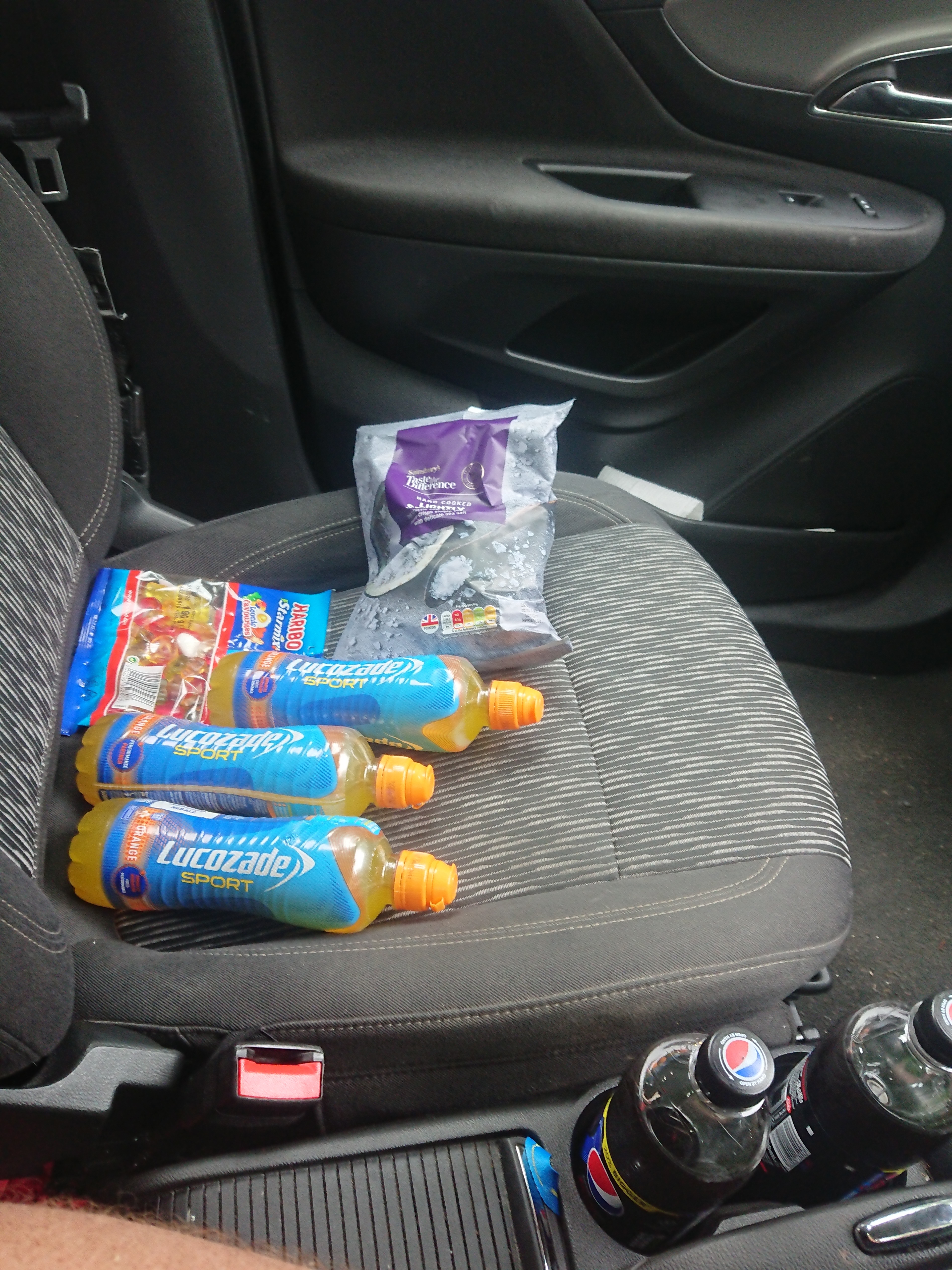 I bought two 600ml bottles of Pepsi Max, four 500ml bottles of still Lucozade Sport, some posh crisps and Haribo Starmix (the lack of more water at this juncture was possibly a sign I deserved what happened next!)